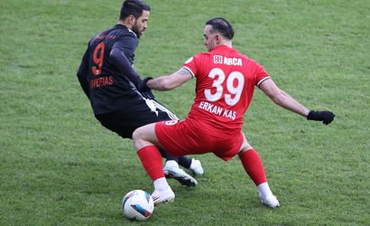 Trendyol 1. Lig'in 26. haftasında Ahlatcı Çorum FK ile Adanaspor, Çorum Şehir Stadyumu'nda karşılaştı. Bir pozisyonda Çorum FK'den Erkan Kaş, rakibi ile mücadele etti.