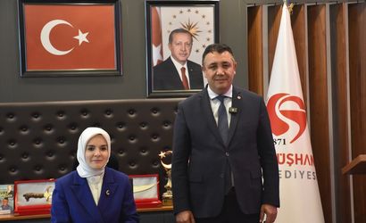 Aile ve Sosyal Hizmetler Bakanı Mahinur Özdemir Göktaş (solda), Gümüşhane'de çeşitli ziyaretler gerçekleştirdi. Bakan Göktaş, Gümüşhane Belediye Başkanı Vedat Soner Başer'ı ziyaret etti.