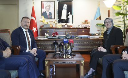 AK Parti Genel Başkan Yardımcısı Belgin Uygur (sağda), Türkiye Şoförler ve Otomobilciler Federasyonunu (TŞOF) ziyaret etti, TŞOF Genel Başkanı Mehmet Yiğiner (solda) ile görüştü.