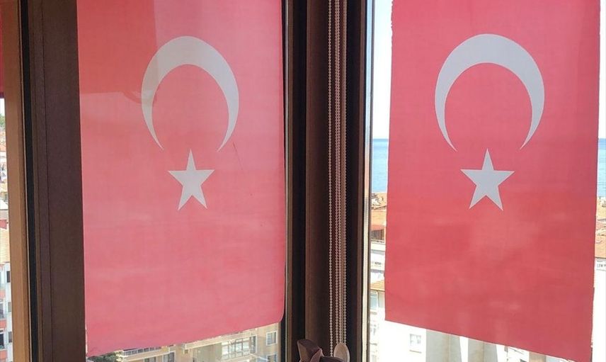 Büyükgümüş, paylaşımında ayrıca pencereye asılı bir Türk bayrağının görseline de yer verdi.