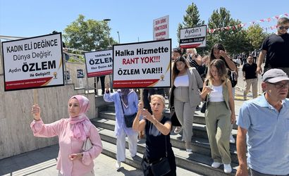 Ziyarette ellerinde 'Aydın'ın efesi topuklu efe' ve 'Özlem ile Aydın rantı yıkacak yarın' yazılı pankartlar taşıyan çok sayıda partili de hazır bulundu ve destek mesajları verdi.