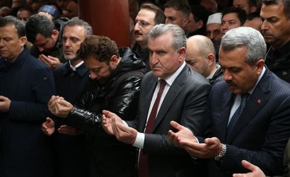 AK Parti Rize Milletvekili Muhammed Avcı'nın babası Hacı Kemal Avcı'nın cenazesi, Rize'de toprağa verildi. Sahil Camisi'nde düzenlenen cenaze namazına katılan Gençlik ve Spor Bakanı Osman Aşkın Bak (sağda), Muhammed Avcı ve yakınlarına baş sağlığı diledi.