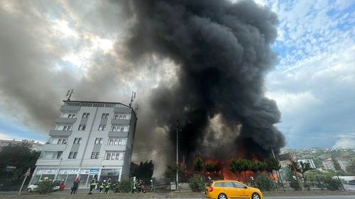 Akçaabat Darıca Mahallesi'ndeki hırdavat ve yapı malzemesi satışı yapılan alışveriş merkezinin deposunda çıkan yangına, 15 araç ve 55 itfaiye personeliyle müdahale ediliyor.