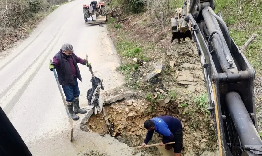 AKÇAKOCA ESMAHANIM KÖYÜ’NDE İÇME SUYU HATTINDAKİ ARIZA GİDERİLİRKEN, TAMAMLANAN KORUGE BORU ÇALIŞMALARIYLA YAĞMUR SUYU TAHLİYESİ SAĞLANDI VE KÖY ALTYAPISI GÜÇLENDİRİLDİ.