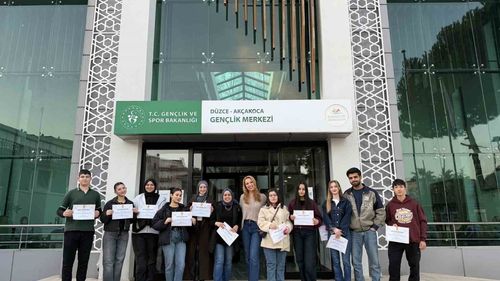 Akçakoca Gençlik Merkezi'nde düzenlenen diksiyon atölyesi, gençlerin yoğun katılımıyla tamamlandı; katılımcılara Ceren Demirağ tarafından katılım belgeleri verildi.