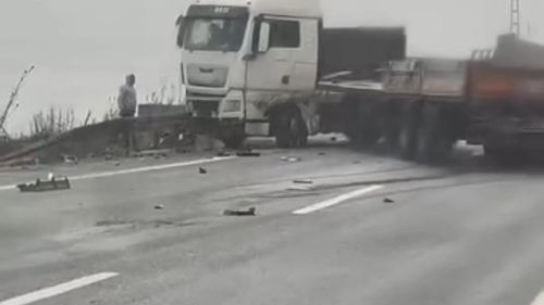 Düzce'nin Akçakoca ilçesinde bir tırın makaslaması Kalkın Plajı çevre yolunu kapattı; jandarma ve belediye ekipleri müdahale ediyor, küçük araçlar güvenlik şeridinden kontrollü geçiş yapıyor.