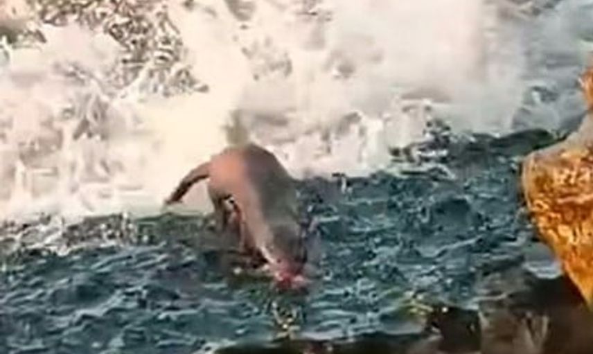 Sahilde gezintide bulunan kişiler, bir süre su yüzeyinde balık peşinde koşan hayvanın daha sonra kıyıdaki kayalıklara çıktığını fark etti. Nadir görülen su samurunun avlanma ve kıyıya çıkma anları, çevredeki vatandaşlar tarafından ilgiyle izlendi ve cep telefonu kamerasıyla kaydedildi.