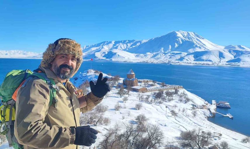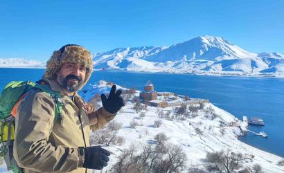 Akdamar Adası karla kaplandı: Doğaseverler adayı ziyaret etti
