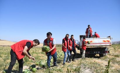 Aksaray Belediyesi, yerel çiftçilerden temin ettiği 80 ton karpuzu sürücüler ve vatandaşlara dağıttı.