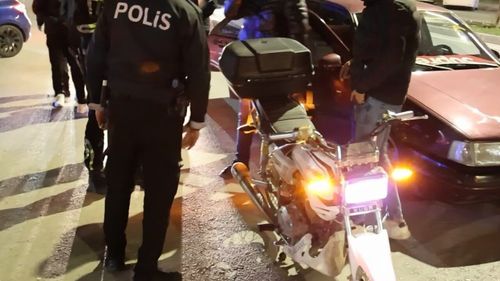Aksaray’da abartı egzoz ve standart dışı ışık takılan motosiklete 13 bin 776 lira ceza