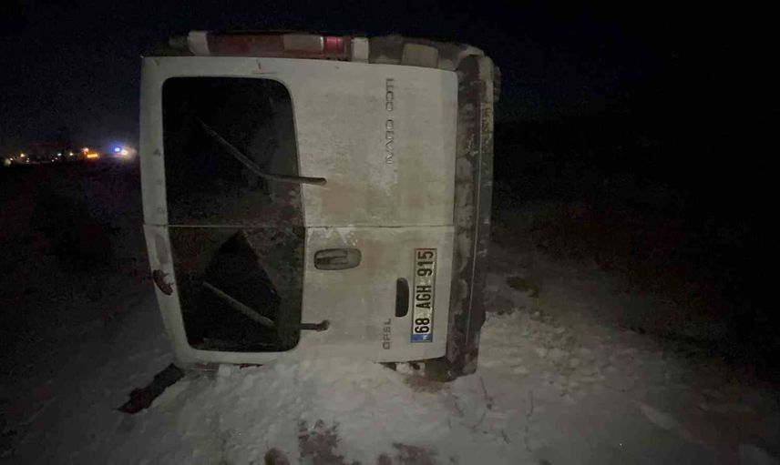 Aksaray'da otomobille çarpışan minibüs şarampole devrildi: 2 yaralı