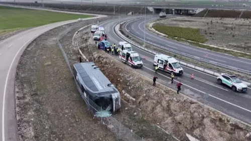 Aksaray'da yolcu otobüsü virajı alamayıp şarampole devrildi: 23 yaralı