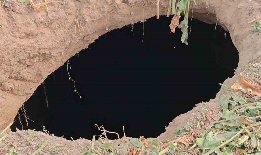 Aksaray Sultanhanı'nda pancar tarlasında obruk oluştu