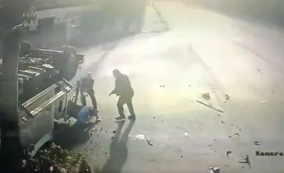 Kaza anı, çevredeki bir otelin iş yeri güvenlik kamerasına yansıdı. Görüntülerde çöp kamyonunun sağ tarafa dönüş yaptığı esnada arkadan gelen kamyonun çarpması, çöp kamyonunun devrilmesi ve devrilen aracın içindeki bir personelin çevredeki kişilerin yardımıyla çıkarılması yer alıyor.