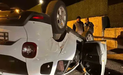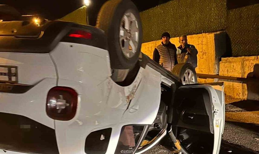 Alanya’da beton bariyerlere çarpan otomobil takla attı