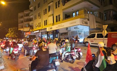 Antalya'nın Alanya ilçesinde, İnsan Hak ve Hürriyetleri (İHH) İnsani Yardım Derneği tarafından motosikletlilerden oluşan bir 'Gazze'ye destek' konvoyu düzenlendi.
