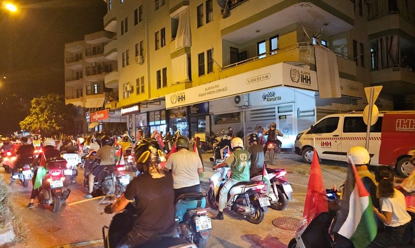 Antalya'nın Alanya ilçesinde, İnsan Hak ve Hürriyetleri (İHH) İnsani Yardım Derneğince motosikletlilerden oluşan "Gazze'ye destek" konvoyu düzenlendi.