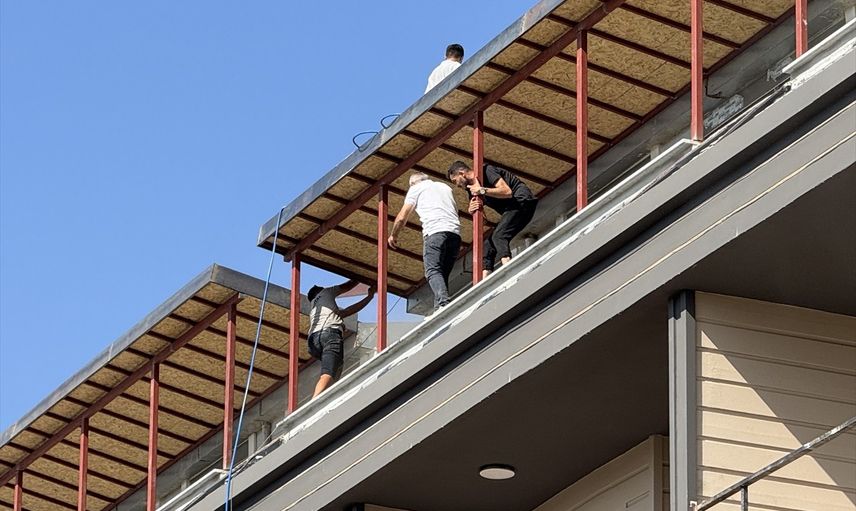 Binanın üst kısımlarında çalışan işçiler, yangın nedeniyle oluşan yoğun dumandan etkilenmemek için balkonlara çıktı. Balkonda bekleyen işçiler, itfaiye ekiplerinin alevleri söndürmesinin ardından güvenli şekilde aşağı indirildi.