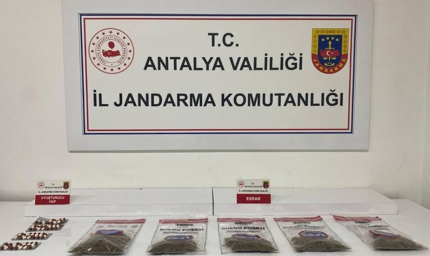 ANTALYA'NIN ALANYA İLÇESİNDE JANDARMA EKİPLERİ TARAFINDAN BİR ŞAHSIN İKAMET ETTİĞİ OTELDE YAPILAN ARAMADA 350 GRAM KUBAR ESRAR VE 53 ADET LYRİCA SENTETİK HAP ELE GEÇİRİLDİ.