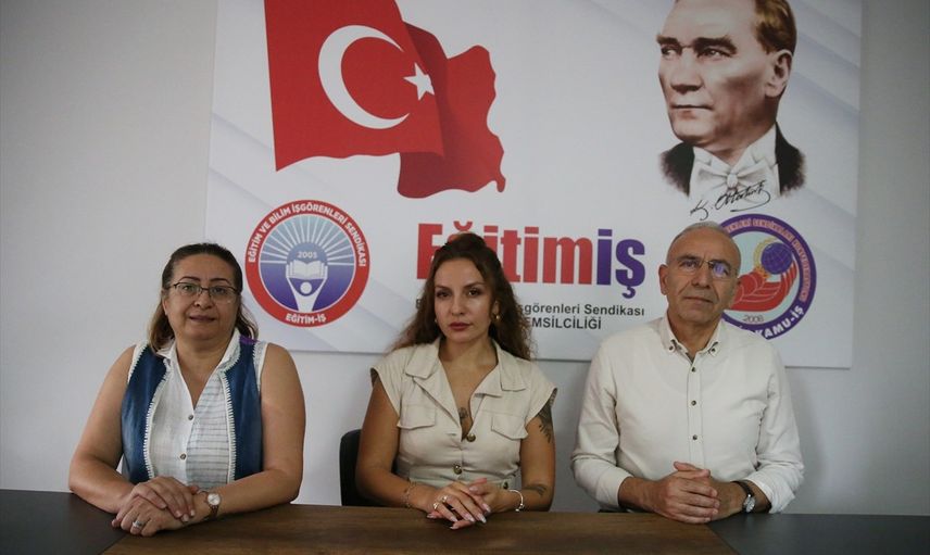 Antalya'nın Alanya ilçesinde bir ilkokulda öğretmene tokat attığı iddia edilen veli tutuklandı. Öğretmenin avukatı Bihter Gönültaş (ortada) , Eğitim-İş Sendikasının Alanya Temsilciliğinde gazetecilere yaptığı açıklamada, öğretmenin bir veli tarafından görevi başında fiziksel şiddete uğramasının eğitim ortamında hiçbir şekilde kabul edilemeyeceğini söyledi.