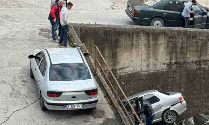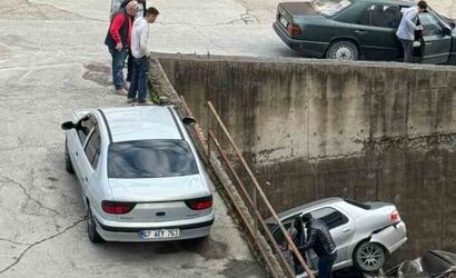 Zonguldak’ın Alaplı İlçesi Karaağaç Mahallesi bayır mevkiinde meydana gelen kazada, rampada geri kayan bir otomobil yaklaşık 8 metre yükseklikten istinat duvarını aşarak alt bölümde park halinde bulunan başka bir aracın üzerine düştü.