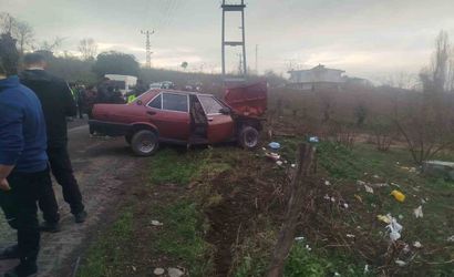 Alaplı Mollabey'de otomobil direğe çarptı: 2 kişi yaralandı