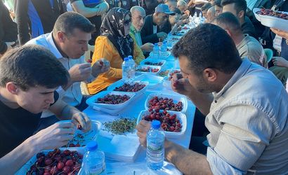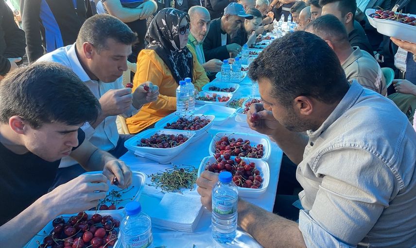 Manisa'nın Alaşehir ilçesinde bu yılki kiraz festivali kapsamında düzenlenen kiraz yeme yarışması, yerel halkın yoğun ilgisiyle gerçekleştirildi. Uluderbent Mahallesi'nde yapılan etkinlikte, 26 yarışmacı 10 dakika içinde en fazla kirazı yemek için ter döktü.