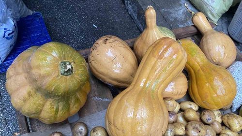 Manisa Alaşehir pazarında satılan bal kabağı, meyvesi ve çekirdeğiyle vitamin-mineral deposu olarak ilgi görüyor; kilosu ort. 25 TL, tanesi 100 TL'den başlıyor.