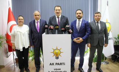 AK Parti Genel Başkan Yardımcısı Ali İhsan Yavuz (ortada), Türkiye Yüzyılı Buluşmaları" programı kapsamında partisinin Uşak İl Başkanlığı'nın ziyaret etti. Yavuz, burada açıklamalarda bulundu. Yavuz'a, AK Parti Denizli Milletvekili Nilgün Ök (solda), AK Parti Uşak milletvekilleri İsmail Güneş (sol 2), Fahrettin Tuğrul (sağ 2), Uşak İl Başkanı Himmet Yaşar (sağda) eşlik etti.