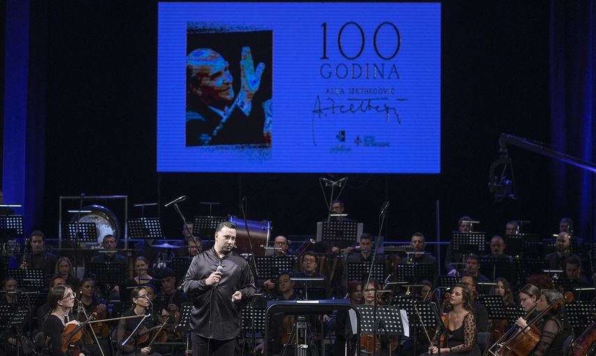 Bağımsız Bosna Hersek'in ilk Cumhurbaşkanı Aliya İzetbegoviç'in doğumunun 100. yılında, "Özgürlüğe Kaçışım" kitabından ilham alınarak oluşturulan müzik senfonisinin prömiyeri yapıldı. Aliya İzetbegoviç'in oğlu ve Demokratik Eylem Partisi (SDA) Genel Başkanı Bakir İzetbegoviç, (sağda), İlim Yayma Vakfı Mütevelli Heyeti Başkanı Bilal Erdoğan da (solda) katıldı.