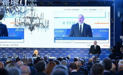 Azerbaycan Cumhurbaşkanı İlham Aliyev, İtalya'nın Como Gölü kıyısındaki Cernobbio kasabasında her yıl eylül ayı başında düzenlenen Ambrosetti Forumu'na katılarak konuşma yaptı.
