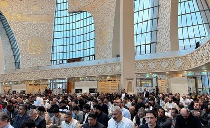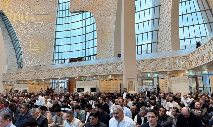 Almanya'nın Köln şehrinde Kurban Bayramı dolayısıyla Köln Merkez Camisi'ne gelenler bayram namazı kıldı.