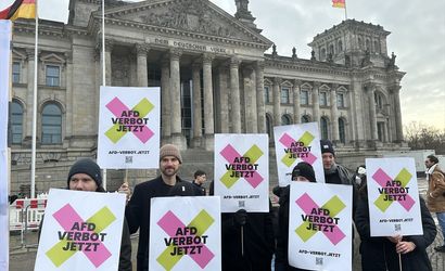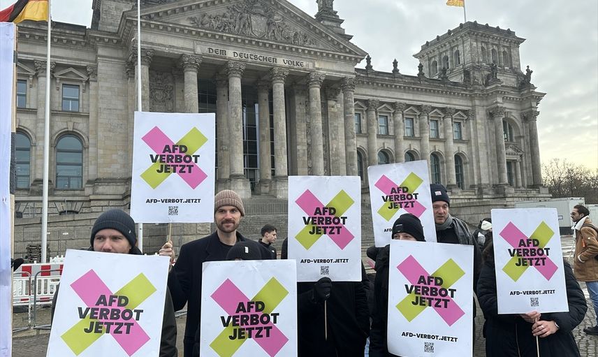 Almanya'da çok sayıda sivil toplum kuruluşu (STK) milletvekillerine, aşırı sağcı popülist Almanya için Alternatif (AfD) partisinin yasaklanmasının incelenmesi yönünde Federal Meclise verilen önergeyi desteklemeleri çağrısında bulundu. Basın toplantısı kapsamında, üzerinde "Duruşunuzu gösterin: AfD'nin yasaklanması şimdi" yazan pankart açıldı.