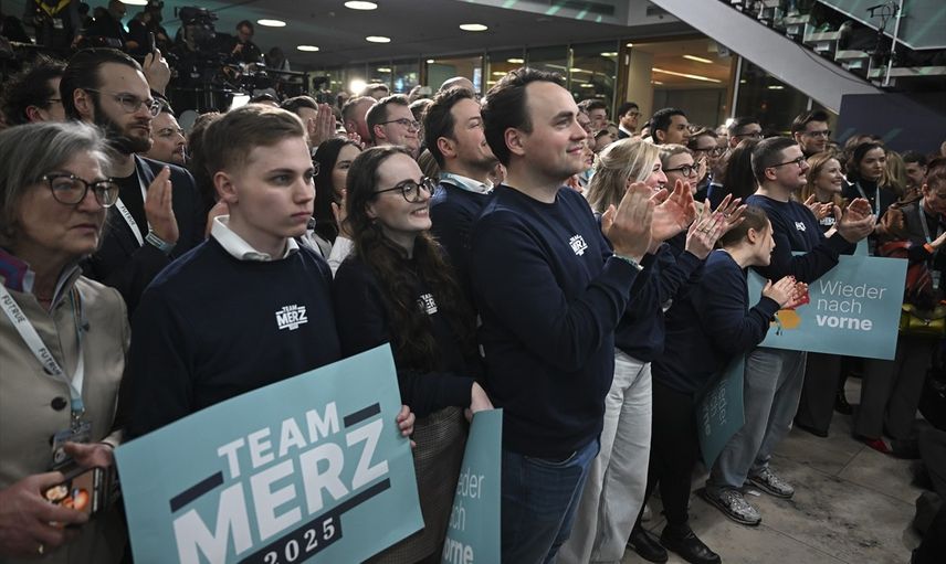 Almanya’da yapılan genel seçimde ilk sandık çıkış anketine göre Hristiyan Birlik (CDU/CSU) partileri yüzde 29 oy oranıyla birinci çıktı. Partililer, Almanya'da Hristiyan Demokrat Birlik Partisi (CDU) genel merkezinde seçim sonuçlarını takip etti.