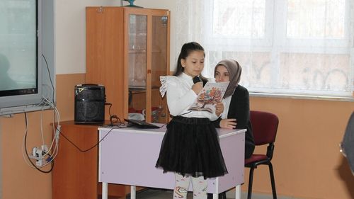 İstiklal İlkokulu'nda düzenlenen 'Çocuk Şiirleri Okumaları' etkinliğinde öğrenciler şiirleri seslendirip bilmedikleri kelimeleri araştırdı; İlçe Milli Eğitim yetkilileri katıldı.