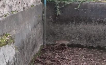 Boş havuza düşen yavru karacayı itfaiye ekipleri kurtardı