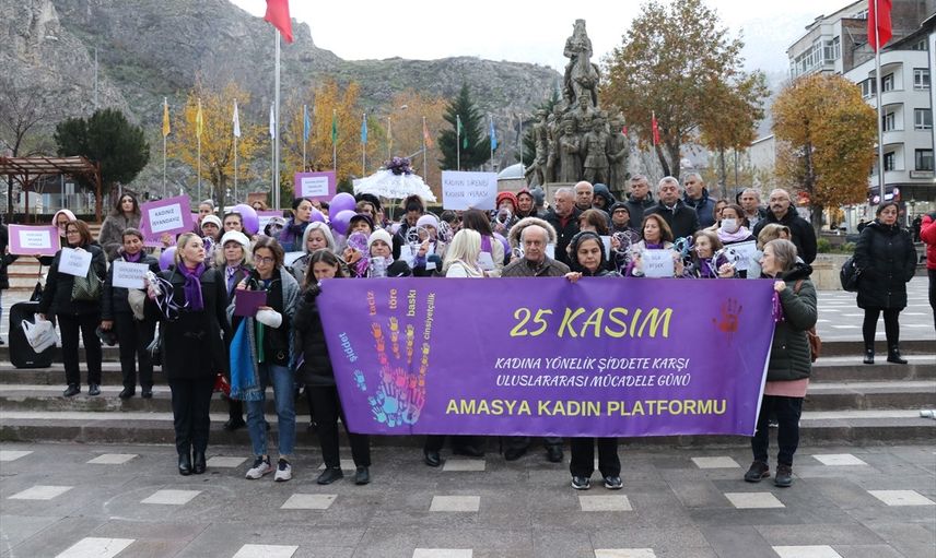 Amasya'da kadına yönelik şiddete karşı farkındalık oluşturmak için, "mor mendil ve ayakkabılı" protesto düzenlendi. İl Kadın Platformu tarafından, 25 Kasım Kadına Yönelik Şiddete Karşı Uluslararası Mücadele Günü kapsamında "Kadına yönelik şiddete sıfır tolerans" sloganıyla gerçekleştirilen etkinlikte, kadınlar bir araya geldi.