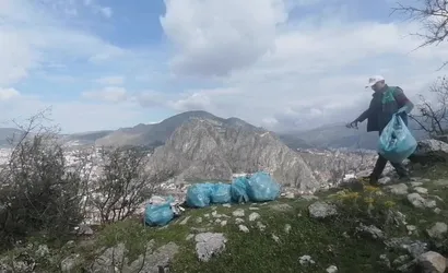 Amasya'da kuşkonmaz için çıktığı yamaçta 6 torba çöp topladı