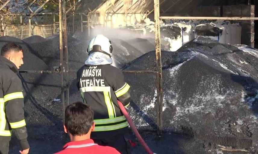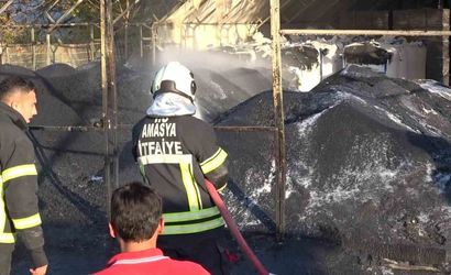 Amasya'da plastik malzeme dolu çadır depoda yangın