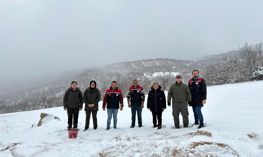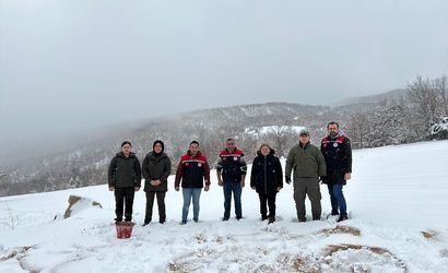 Amasya'nın Göynücek ilçesinde kar nedeniyle yiyecek bulmakta zorluk çeken yaban hayvanları için doğaya yem bırakıldı.