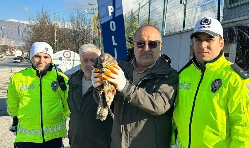 Amasya - Tokat karayolunda trafik denetimi yapan Amasya Emniyet Müdürlüğü Bölge Trafik Denetleme Şubesi ekipleri, yol kenarında yaralı halde bir kuş fark etti. Yapılan incelemede kuşun kızıl şahin olduğu belirlendi.