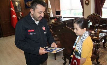 Durmuş Ayvaz, minik Betül ve ailesini tebrik ederek, "Bu duyarlı davranışından dolayı minik yavrumuza çok teşekkür ediyorum. Filistin'deki kardeşlerinizin içinde bulundukları sıkıntılardan kurtulmaları için dua edelim ve bu vahşeti unutmayalım, unutturmayalım," şeklinde duygularını ifade etti.
