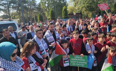 Etkinliğe katılan çok sayıda kişi, ellerinde Filistin ve Türk bayrakları, döviz ve pankartlarla 15 Temmuz Demokrasi Meydanı'na kadar yürüdü.
