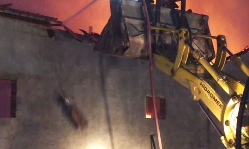 Deveci köyündeki malzeme deposunda gece saatlerinde alevler yükseldi