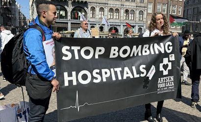 Göstericiler, "Nehirden denize kadar Filistin özgür olacak", "İşgali sona erdir", "Soykırımı durdur", "İsrail'i boykot et" ve "Utanın" yazılı dövizler taşıdı. Ayrıca, Filistin bayraklarıyla birlikte "Özgür Filistin", "Yazıklar olsun Hollanda, elleriniz kanlı" ve "İsrail bombalıyor, Hollanda ödüyor" sloganları atıldı.