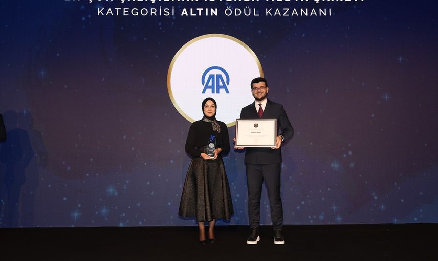 Anadolu Ajansı (AA), Youthall tarafından Türkiye'nin en beğenilen şirketlerini belirlemek üzere düzenlenen "Youth Awards" kapsamında en çok çalışılmak istenen medya şirketleri arasında ilk sırada yer aldı. Beşiktaş'ta bir otelde gerçekleştirilen ödül töreninde AA, "En Çok Çalışılmak İstenen Medya Şirketi" kategorisinde altın ödüle layık görülürken, ödülü, Ajans adına Anadolu Ajansı İnsan Kaynakları ve Değişim Yönetimi Direktörü Gülistan Mollamehmetoğlu (solda) ile Anadolu Ajansı Çalışan Deneyimi Müdürü Ahmet Aslan (sağda) aldı.