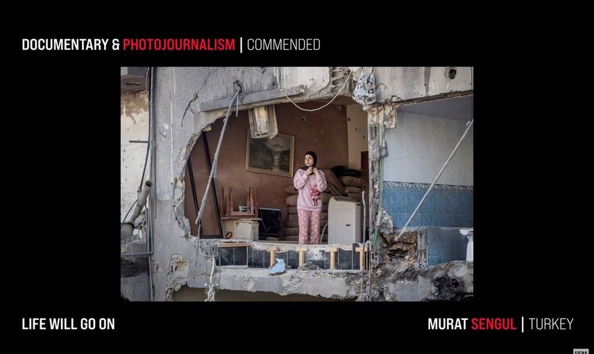 AA'nın Gazze'deki foto muhabirlerinden Ali Jadallah'ın "Leaving Home" başlıklı karesi, "Yılın Fotoğrafı" ödülünü aldı.
