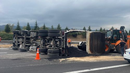 Bolu Dağı Tüneli'nde asfalt yüklü kamyonun devrilmesi sonucu Anadolu Otoyolu'nun İstanbul yönü ulaşıma kapandı; ekipler yolun açılması için çalışma başlattı.
