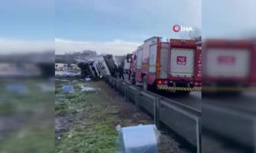 Anadolu Otoyolu Sakarya geçişinde, İstanbul istikameti Hendek ilçesi İkbaliye Mahallesi mevkiinde meydana gelen kazada, sürücü C.D. yönetimindeki 27 AUH 322 plakalı tır kontrolden çıkarak refüje çarpıp yan yattı.