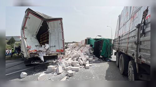 Anadolu Otoyolu'nda 3 kamyon çarpıştı!